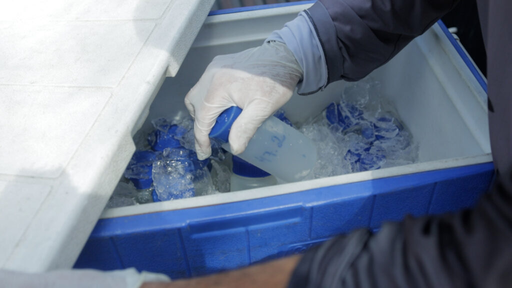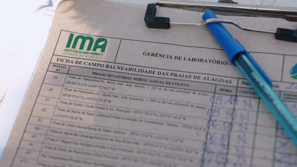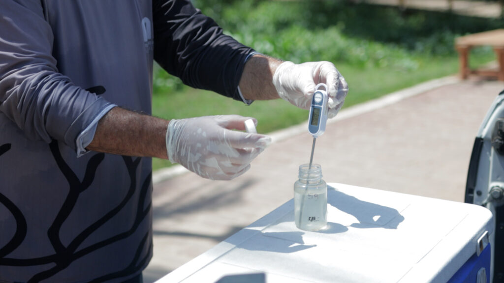 “Existe toda uma logística que seguimos, tudo começa no laboratório, onde o material é preparado: recipientes, termômetro, ficha de campo, caixa térmica para acomodar os recipientes e mantê-los resfriados. Seguimos um checklist com todo rigor para preservar o material coletado”, explicou Ricardo Oliveira, consultor ambiental do IMA/AL.