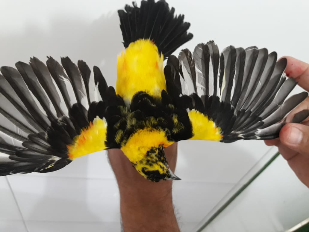 “Já ocorreu de chegar um corrupião com a coloração amarela, porém a coloração normal é preto e laranja. Isso se deu em razão da dieta inadequada em cativeiro, muitos animais chegam assim”, expõe.