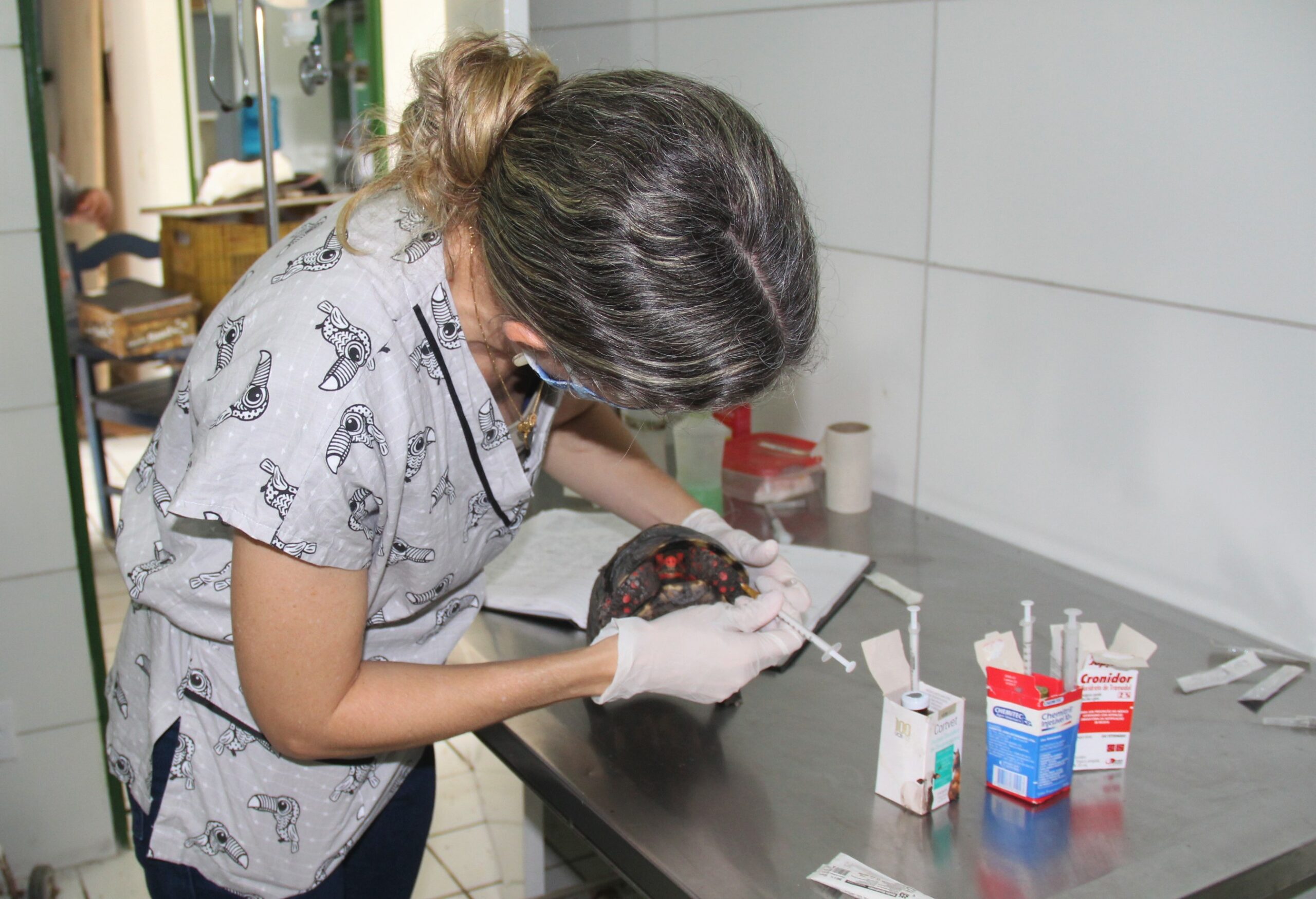Jabuti sendo tratado no Cetas. Foto: Ascom IMA/AL