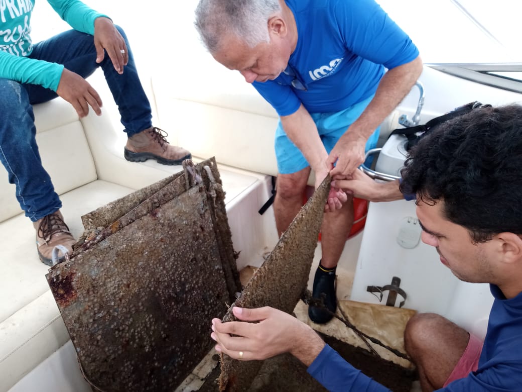 “Ao retirar as placas da água observamos que elas estão com organismos comuns da região, como esponjas e cracas. Não encontramos nenhum vestígio de pólipos do coral-sol”, explica André Felipe Bispo, biólogo e consultor ambiental do IMA.