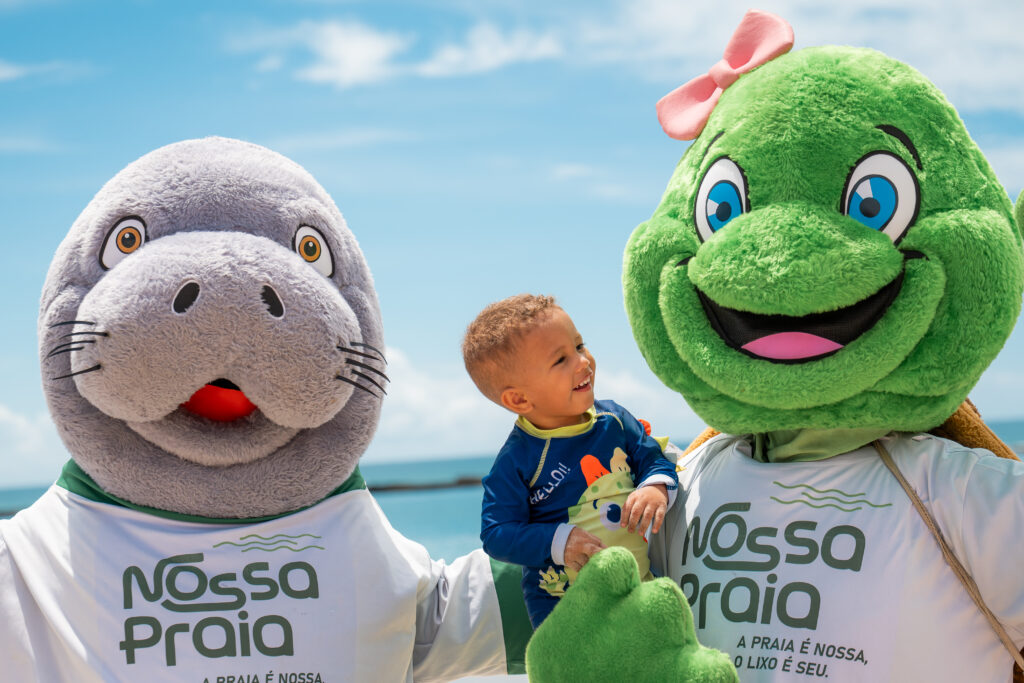 A turista de São Paulo ficou surpresa ao chegar à praia e se deparar com a ação, que une ensinamentos ambientais e alegria, principalmente pela participação dos mascotes Astro e Dorothy.