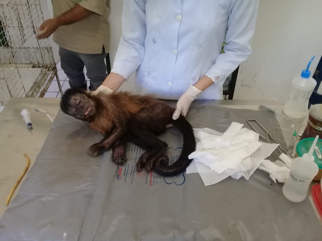 Macaco-prego idoso com dificuldade de alimentação é tratado no Cetas