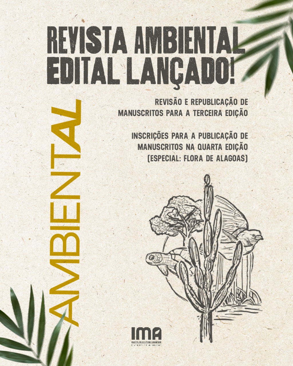 As próximas edições da revista técnica AmbientAL, produzida pelo Instituto do Meio Ambiente do Estado de Alagoas (IMA/AL), serão lançadas este ano. Com o objetivo de reunir conhecimentos acerca das diversas áreas ambientais, a submissão dos trabalhos é aberta ao público. As inscrições vão até o dia 17 de abril e os manuscritos devem ter de 10 a 30 páginas.