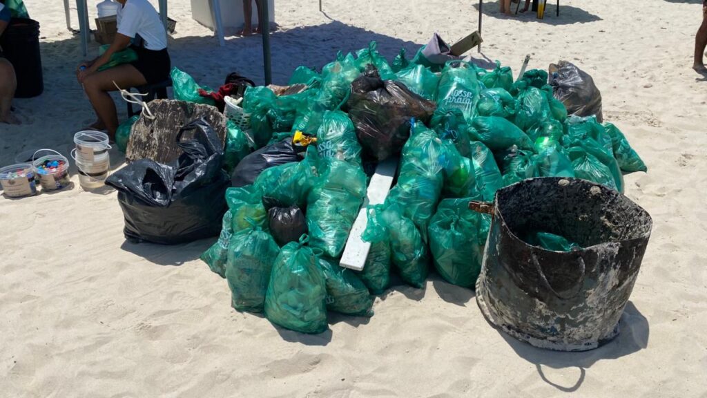 Mais de 300kg de resíduos sólidos foram retirados da faixa de areia e do mar