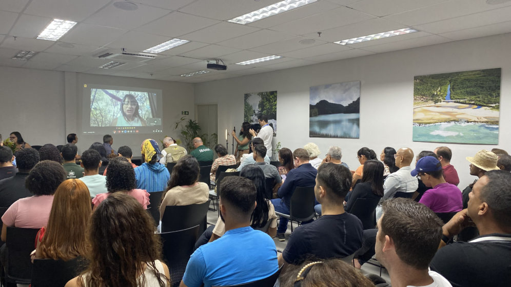 Representante da comunidade indígena Tingui Botó, Eré Batista, reforçou a importância do cuidado com os recursos naturais. “Estamos nesse processo de produção de mudas há muito tempo, seguindo o conhecimento dos nossos antepassados, que falavam da importância de manter a natureza de pé, porque é dela que nós existimos, é dela que a tiramos nossos ensinamentos, nossa sabedoria”, contou.